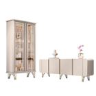Kit Cristaleira e Buffet Aparador Ouro Nature Off White Bnn Decor HB Móveis