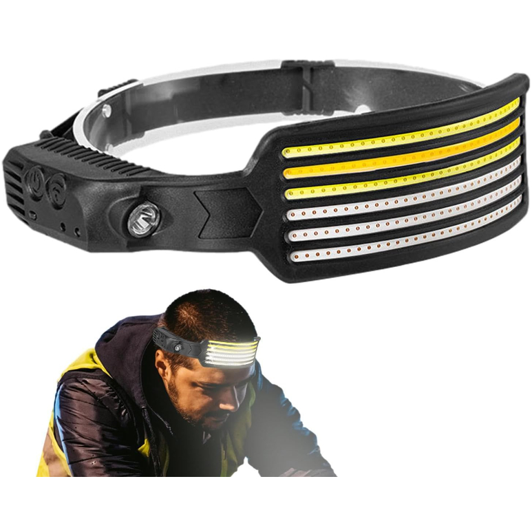 Farol de LED Recarregável Lanterna de Cabeça Com 6 Fita Led Cob + Luz de Foco e Sensor De Movimento , Faróis Para Adultos, Lanterna De Cabeça Para Ciclismo, Corrida e Reparos