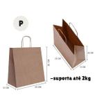 Kit 50 Sacolas Papel Kraft Lisa Para Delivery com Alça PP P M G