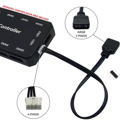 Adaptador 4 Pinos Led1 Led2 Para Controladoras de Fan e Dissipadores Led Argb 3 Pinos 5v 4pin Para 3pin