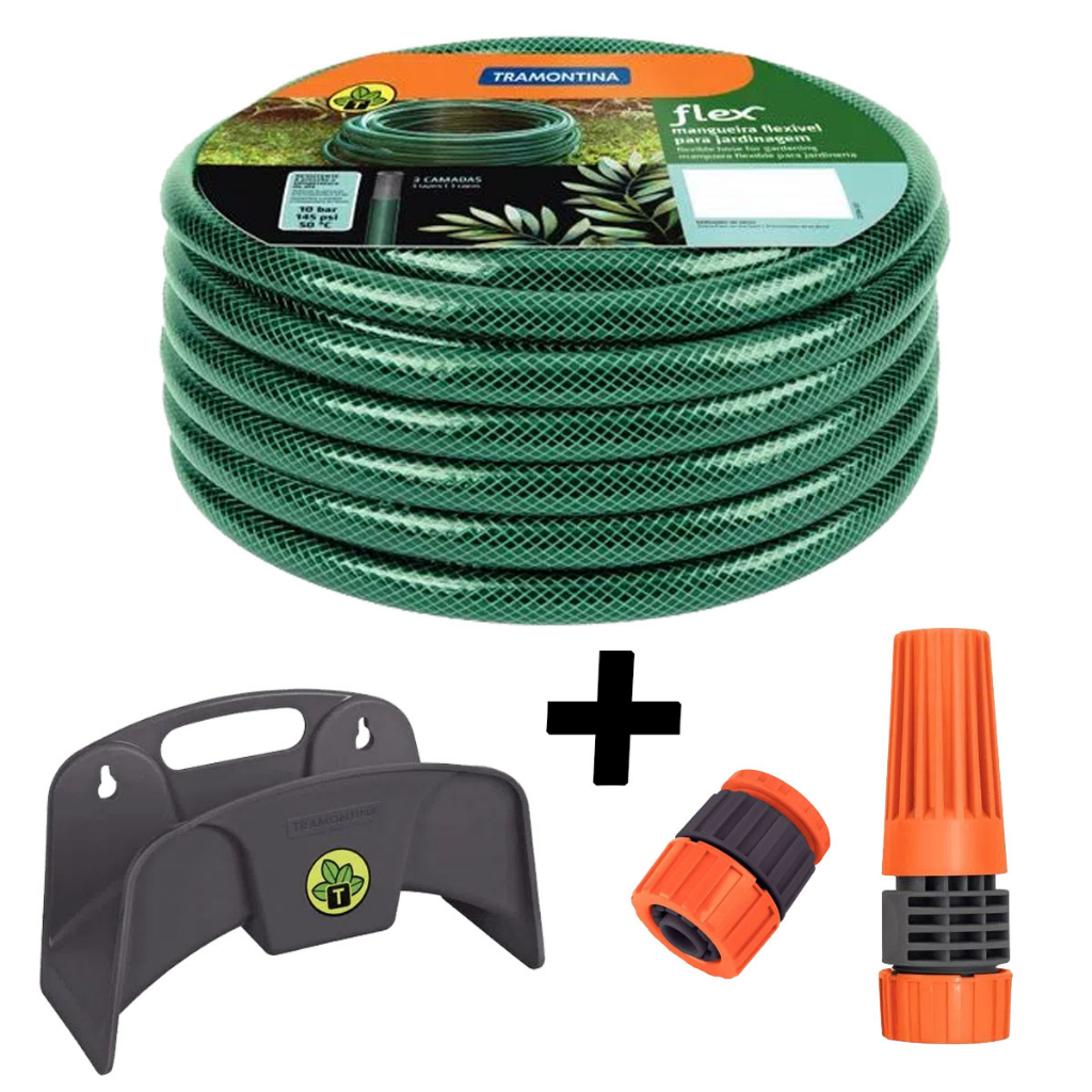 Kit Mangueira 1/2 Flex Verde Tramontina com Suporte