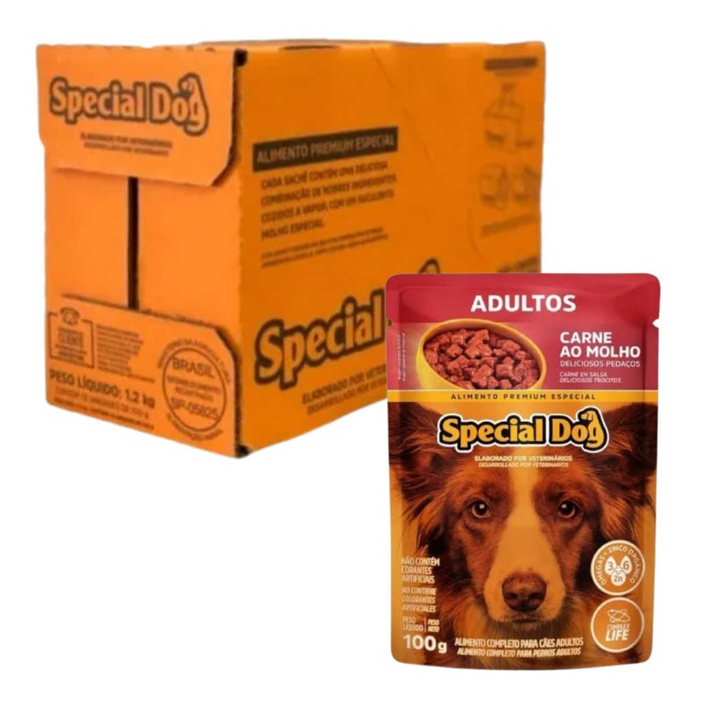 12 unidades Ração úmida Sache Premium Special Dog sabor carne para cães cachorros original caixa lacrada
