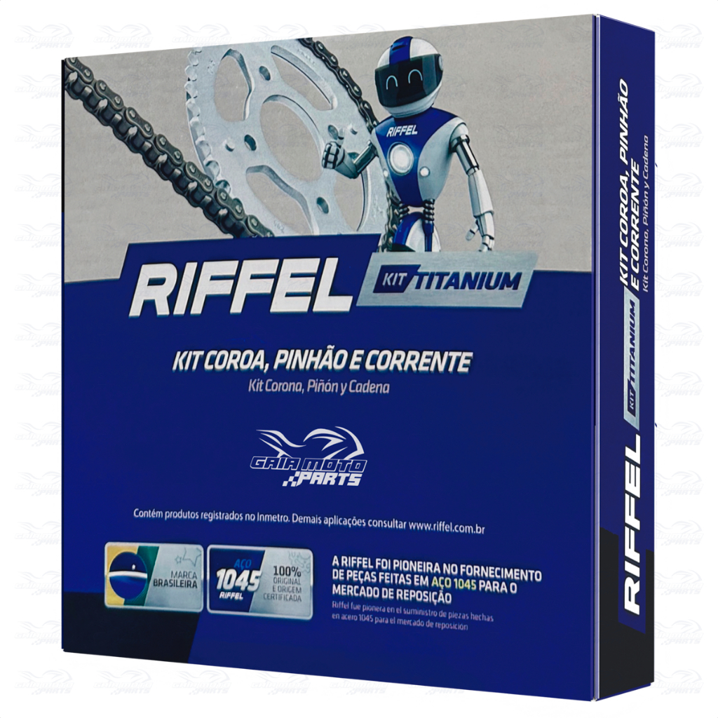 Kit Relação Transmissão 160 ORIGINAL RIFFEL Honda CG TITAN FAN START CARGO 160 COROA PINHÃO CORRENTE AÇO 1045 2015 2016 2017 2018 2019 2020 2021 2022 2023 2024 2025