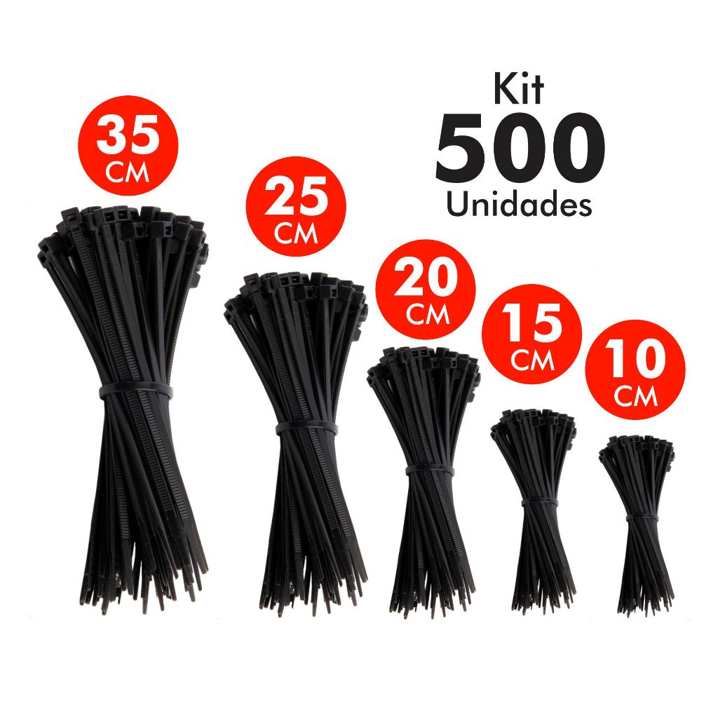 Kit 500 Abraçadeira de Nylon Enforca Gato Braçadeira Cintas Plásticas 10cm - 15cm - 20cm - 25cm - 35cm - Preta | Branca