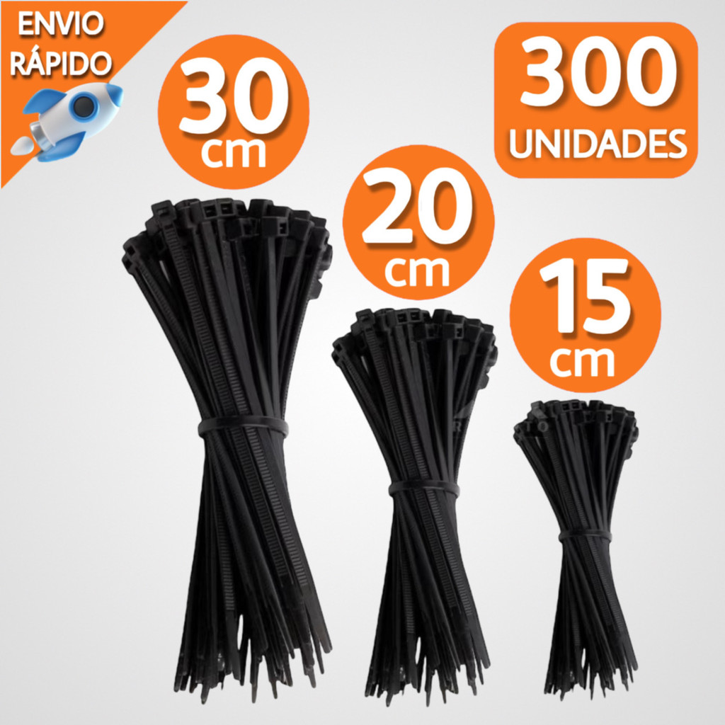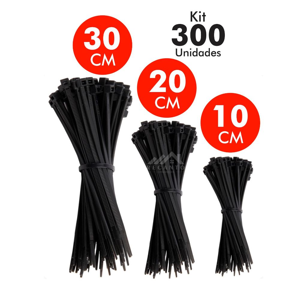 Kit 300 Abraçadeira de Nylon Enforca Gato Braçadeira Cintas Plásticas 10cm - 20cm - 30cm - Preta | Branca