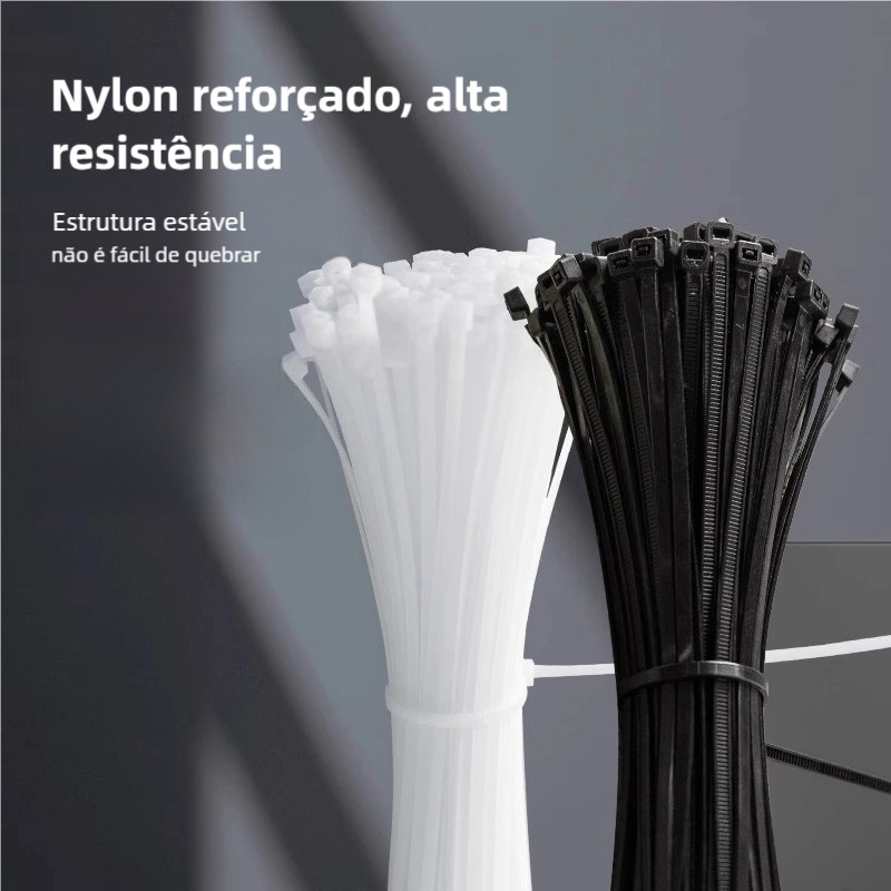 Kit 100 Cintas Plásticas Abraçadeira Nylon Enforca Gato Preta e Branca