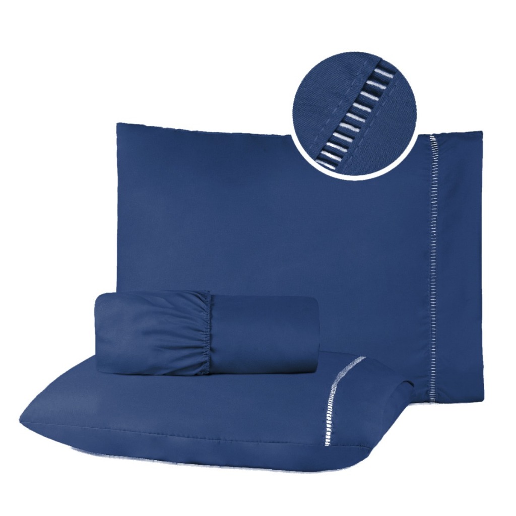 Kit Jogo de Lençol Micropercal 400 fios Ponto Palito 2 Peças - Solteiro