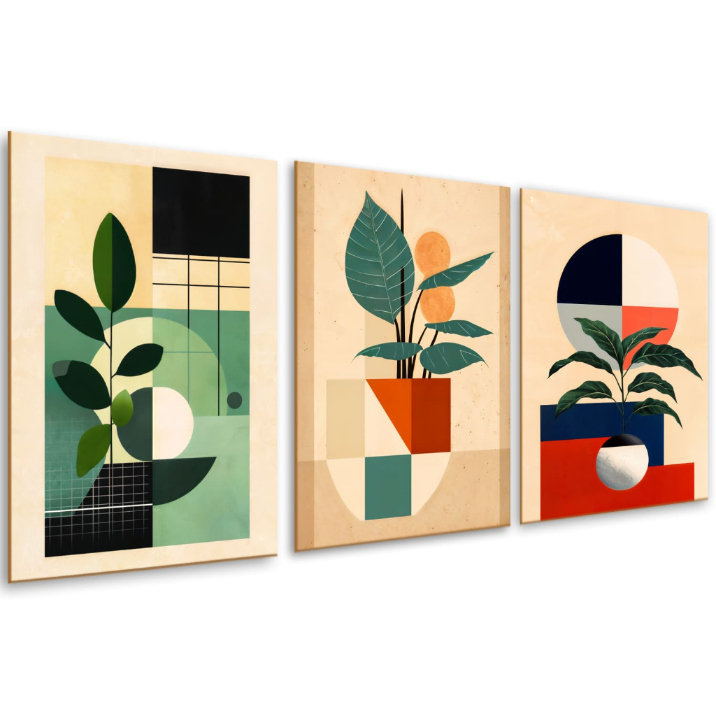 Kit Quadros Decorativos Quarto Sala Escritório Moldura Flores Abstratas Luxo Moderno 3 Peças