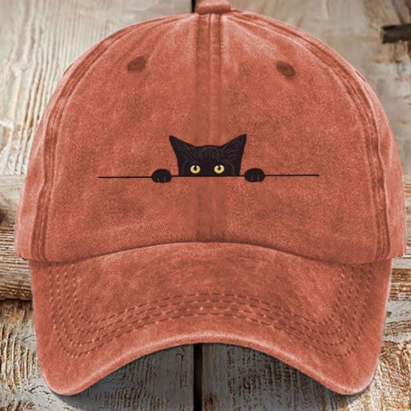 Boné De Beisebol Vintage Com Estampa De Gato De Desenho Animado-Poliéster Lavado Ajustável Para Atividades Ao Ar Livre ,