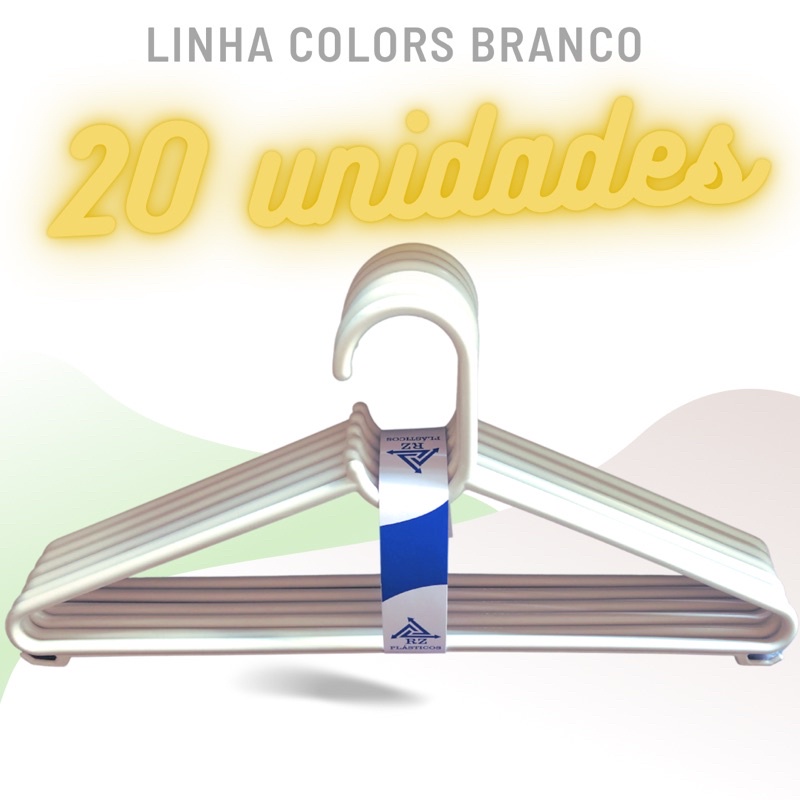 Cabide de Roupa Adulto Plástico Branco com 20 unidades - LINHA COLORS