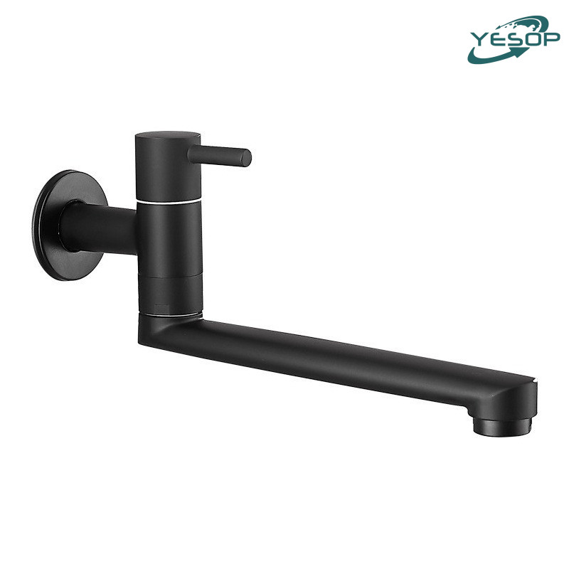 Torneira De Cozinha De Parede Gourmet Fosco Preto Aço Inox 25cm/30cm Yesop