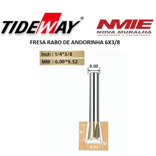 Fresa Rabo De Andorinha Haste 6mm X 3/8'' (9.52mm) TNM
