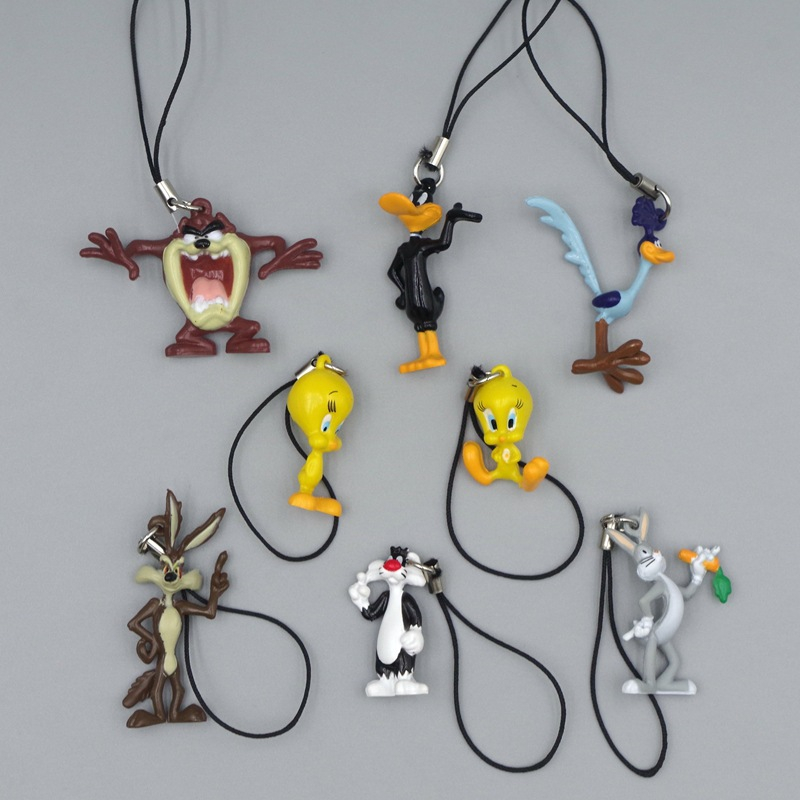 8Pcs/Set 3-5cm Desenho Animado Anime Figura Pernalonga Bunny Coyote Roadrunner Tasmanian Devil Daffy Duck Cell Phone lanyard Q Versão PVC Figuras De Ação Modelo Doll Toys