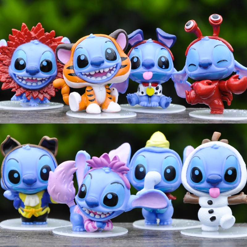 8Pcs/Set Lilo & Stitch Anime Figura Cosplay Animal Tigger Olaf Dog Versão Q Figuras De Ação Em PVC Modelo De Bolo De Mesa Decoração Doll Toys