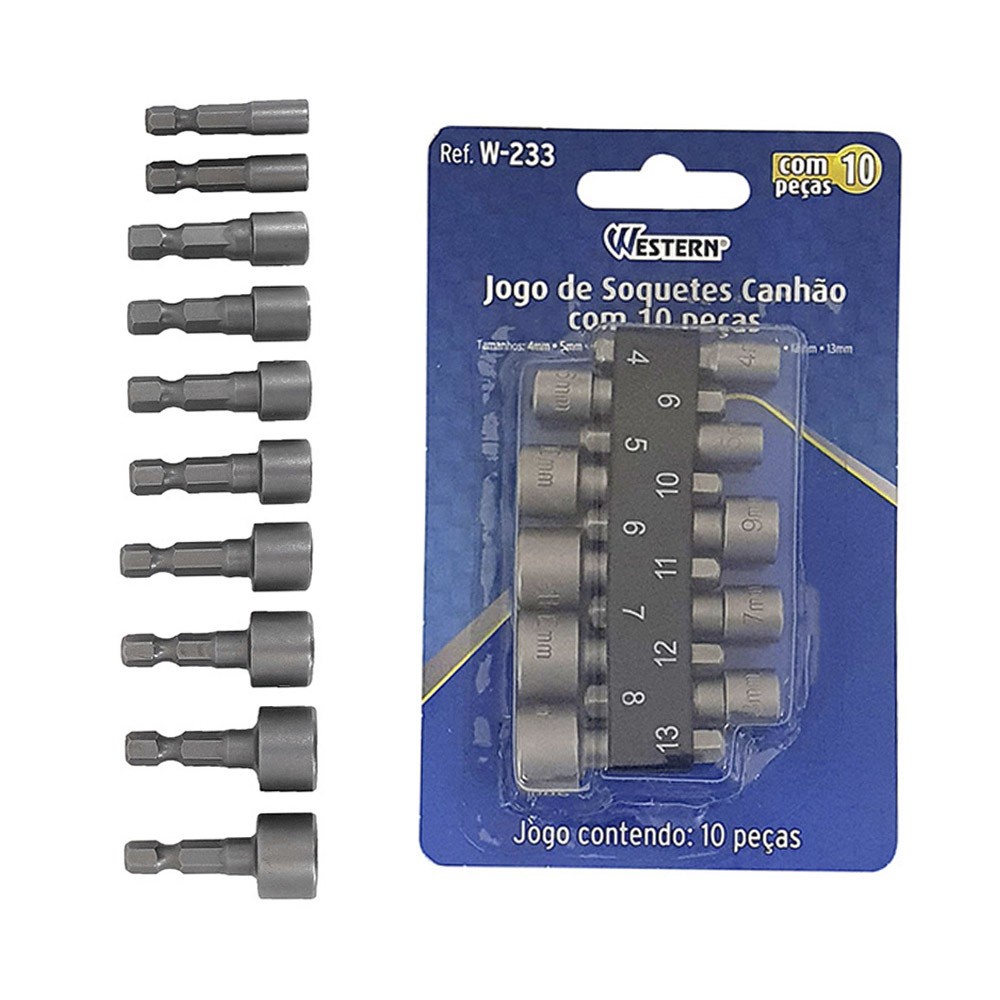 Jogo Kit de Bits Soquetes Canhão Parafusadeira 10 Peças 4 à 13mm Aço Carbono Parafusar Porcas