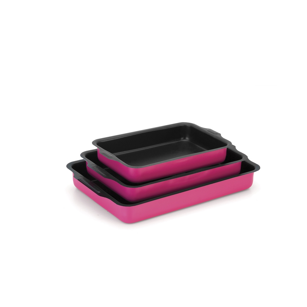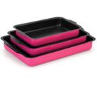 Conjunto de Assadeiras Antiaderente Retangular Alta Com Aba Rosa Nº 1 a 3