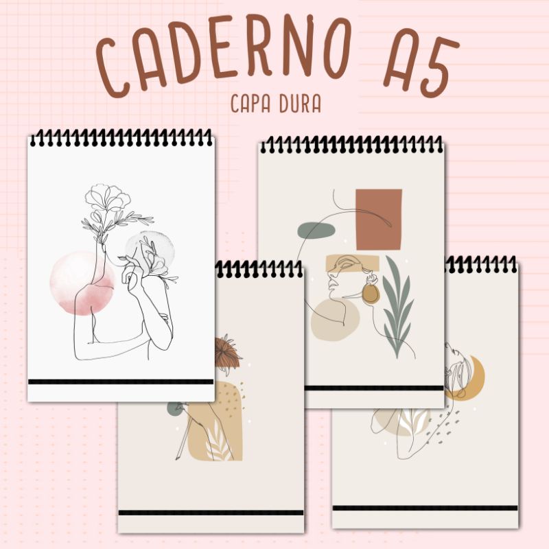 Caderno 21x29cm (A4) com capa kraft, folha pautado ou liso, e espiral metalica ou comum