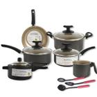 Conjunto Panela Caçarolas Antiaderente Teflon Tampa De Vidro 5 peças PRETO E BEGE