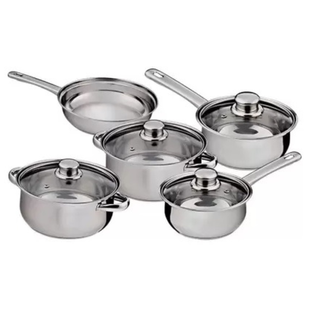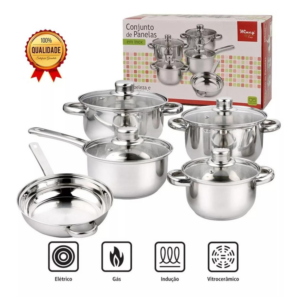 Conjunto De Panelas 5 Peças Tampa Vidro Aço Inox - Wincy