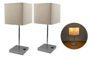 Kit 02 Abajur luminaria de Mesa Quadrado liga/desliga Escovado + Cúpula Algodão bege