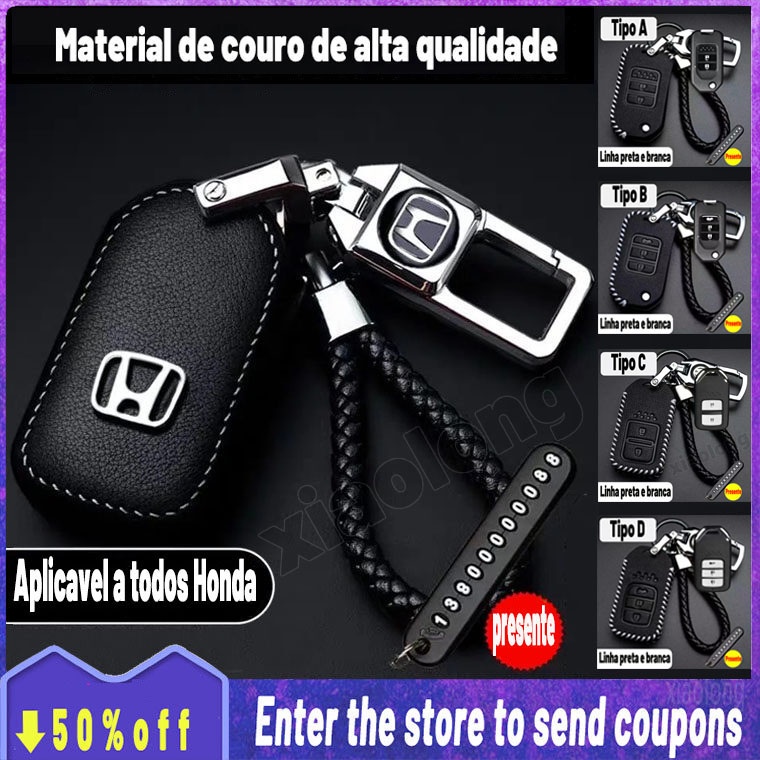 [Promo] Couro de alta qualidade capa para chave de carro / Premium chave do carro capa / chave do carro capa protetora acessórios para carro Para Honda / High Quality Leather Car Key Cover For Honda Civic Fit City New Jazz Hrv Crv Accord Odyssey