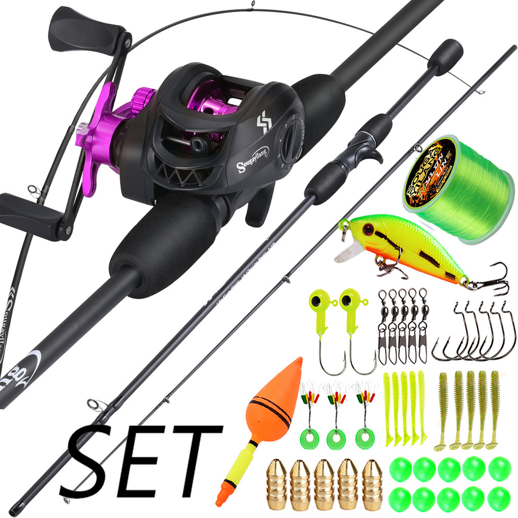 Sougayilang 1.8M Vara De Pesca De Arremesso Carretel Linha Isca Combo 7.2 : 1 De Alta Velocidade Carbono Conjunto Comple