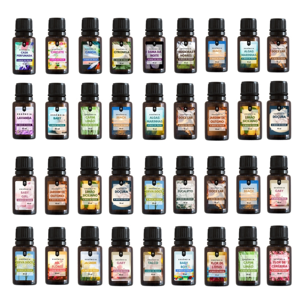 Kit Essências Para Umidificador e Difusor Ambiente 30 Unidades 15ml - Diversas Fragrâncias