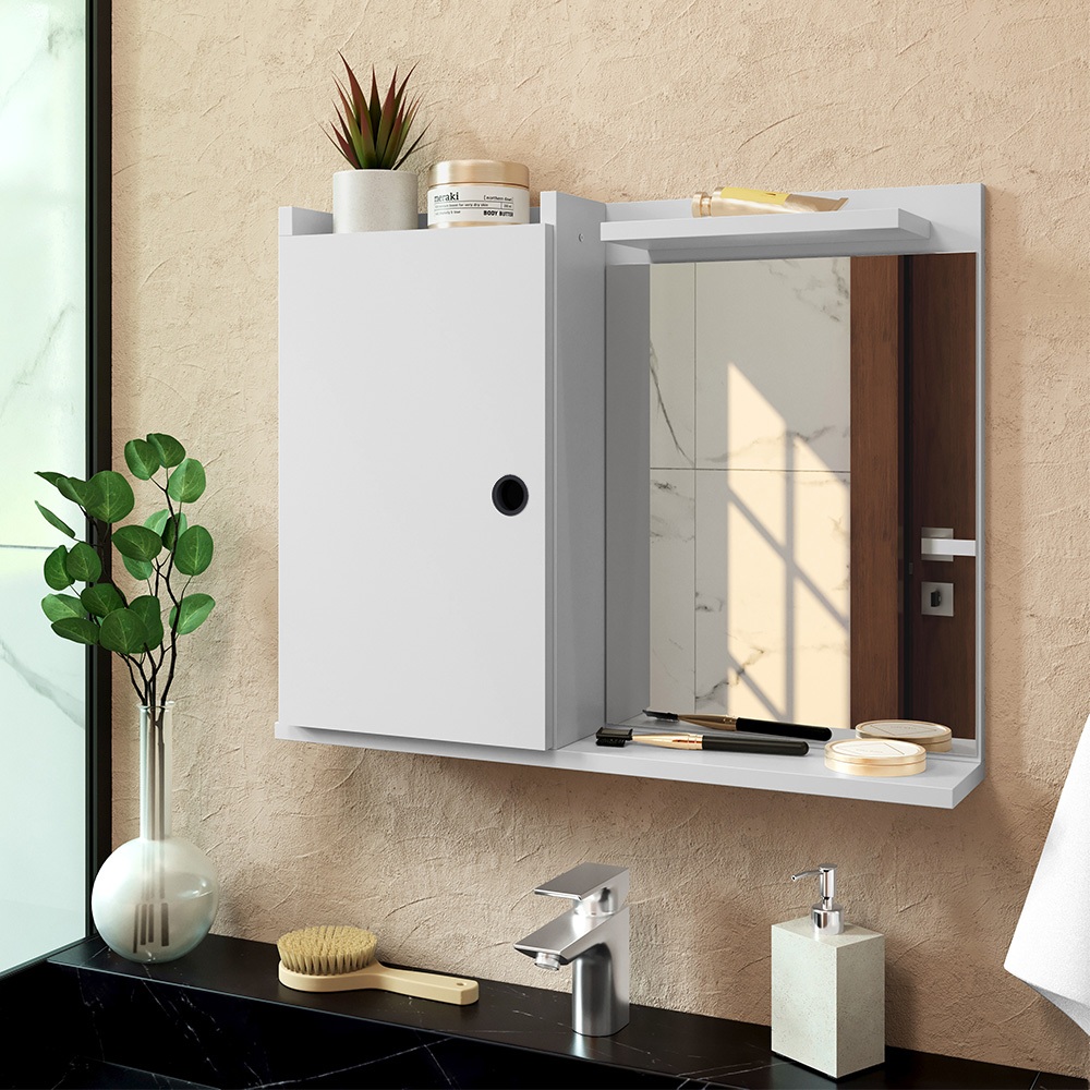 Armário de Banheiro Suspenso Parede Armarinho Espelheira 1 Porta Com Espelho Sobrepor Balcão Gabinete Prateleira Organizadora Genova - Várias Opções de Cores - Lojas RPM