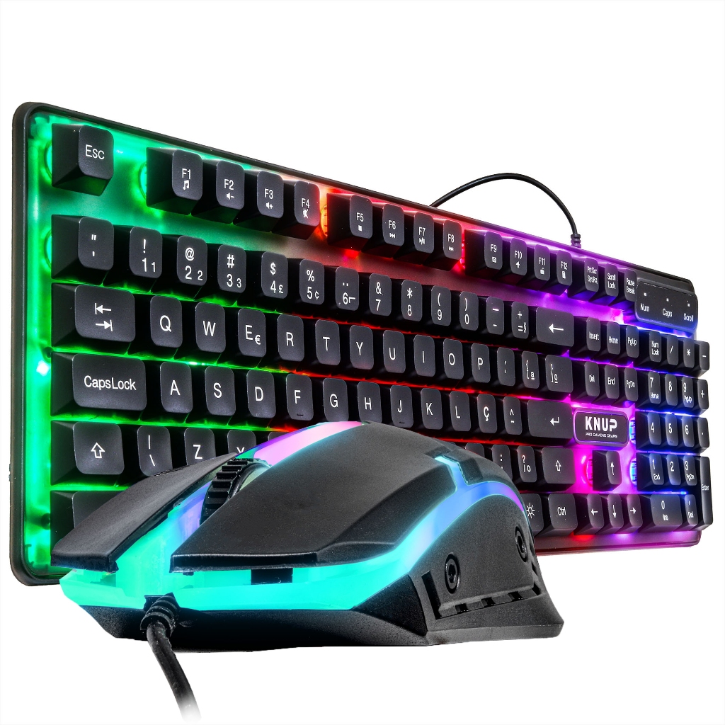 Kit Teclado e Mouse Gamer Com Led Rgb Teclas de Atalho Multimídia ABNT2