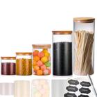 Kit 5 Potes de Vidro Herméticos com Tampa Bambu, Adesivos e Canetinha