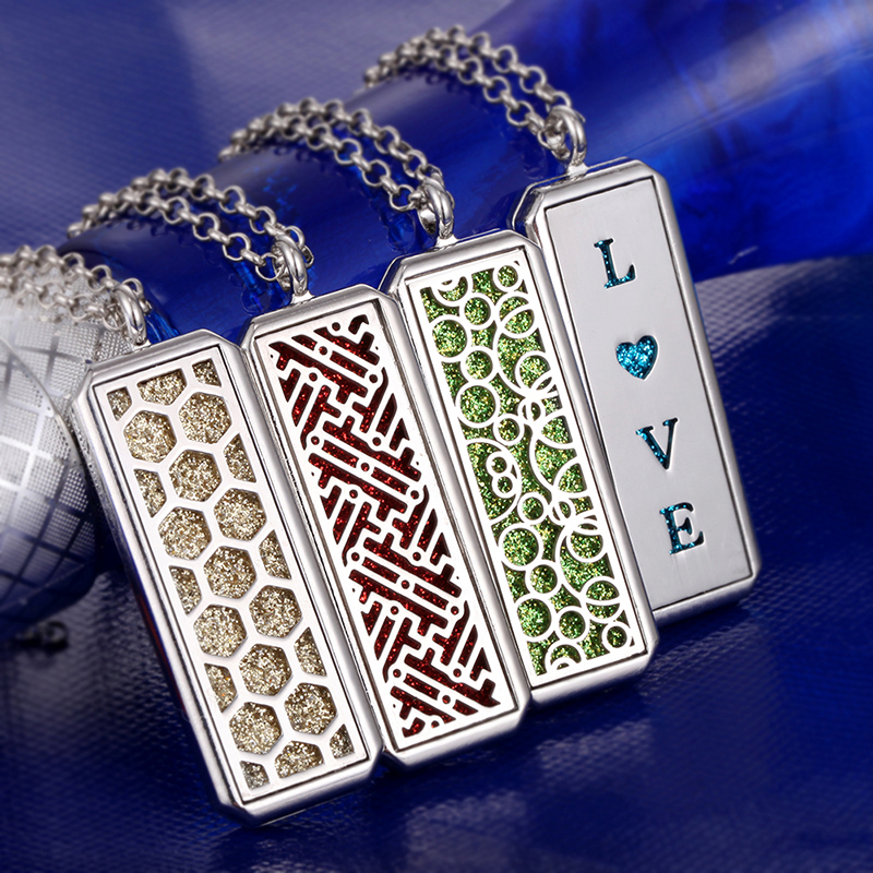 Colar Difusor De Aromaterapia Jóias Rectângulo Retângulo De Aço Inoxidável Pingente De Óleo Essencial Perfume