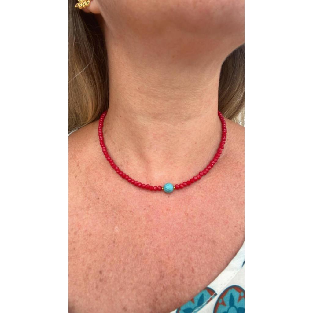 colar chocker cristais com pedra natural turquesa