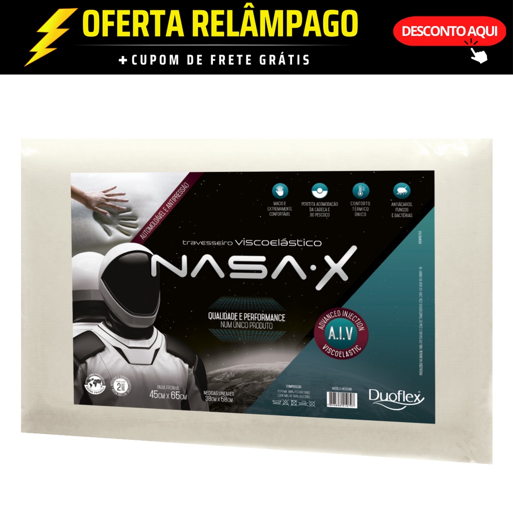 Travesseiro Nasa-X 13 CM Alto Viscoelástico Duoflex Espuma Inteligente Anatômico Ergonômico Original Confortável Antialé