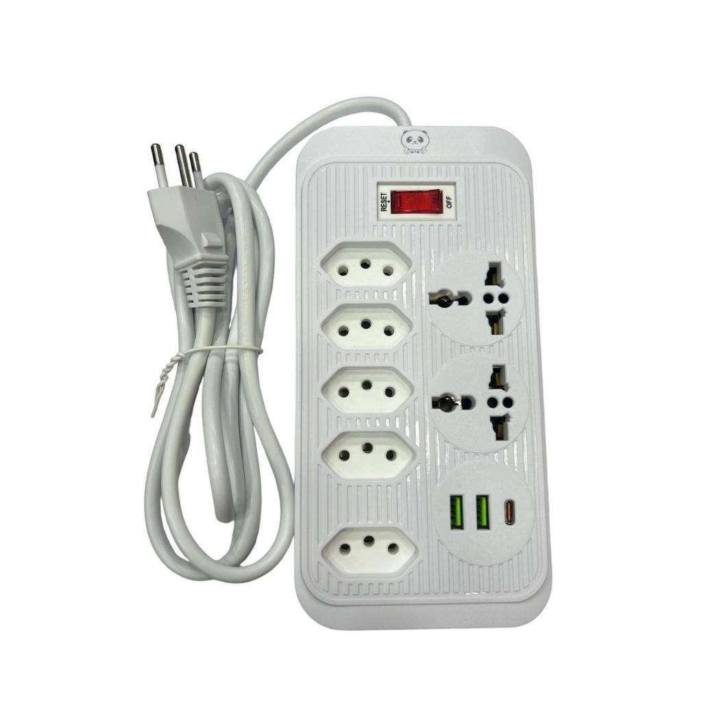 Extensão Elétrica 2m 10A Com 5 tomadas de energia 2 tomadas universal 2 USB 1 Tipo-C Bivolt Power 110v/220v Branca