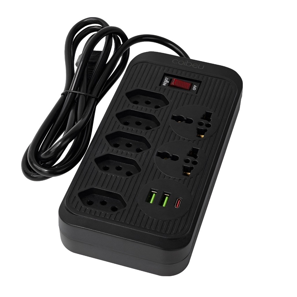 COIBEU Extensão Elétrica 2m 10A Com 5 tomadas de energia 2 tomadas universal 2 USB 1 Tipo-C Bivolt Power 110v/220v