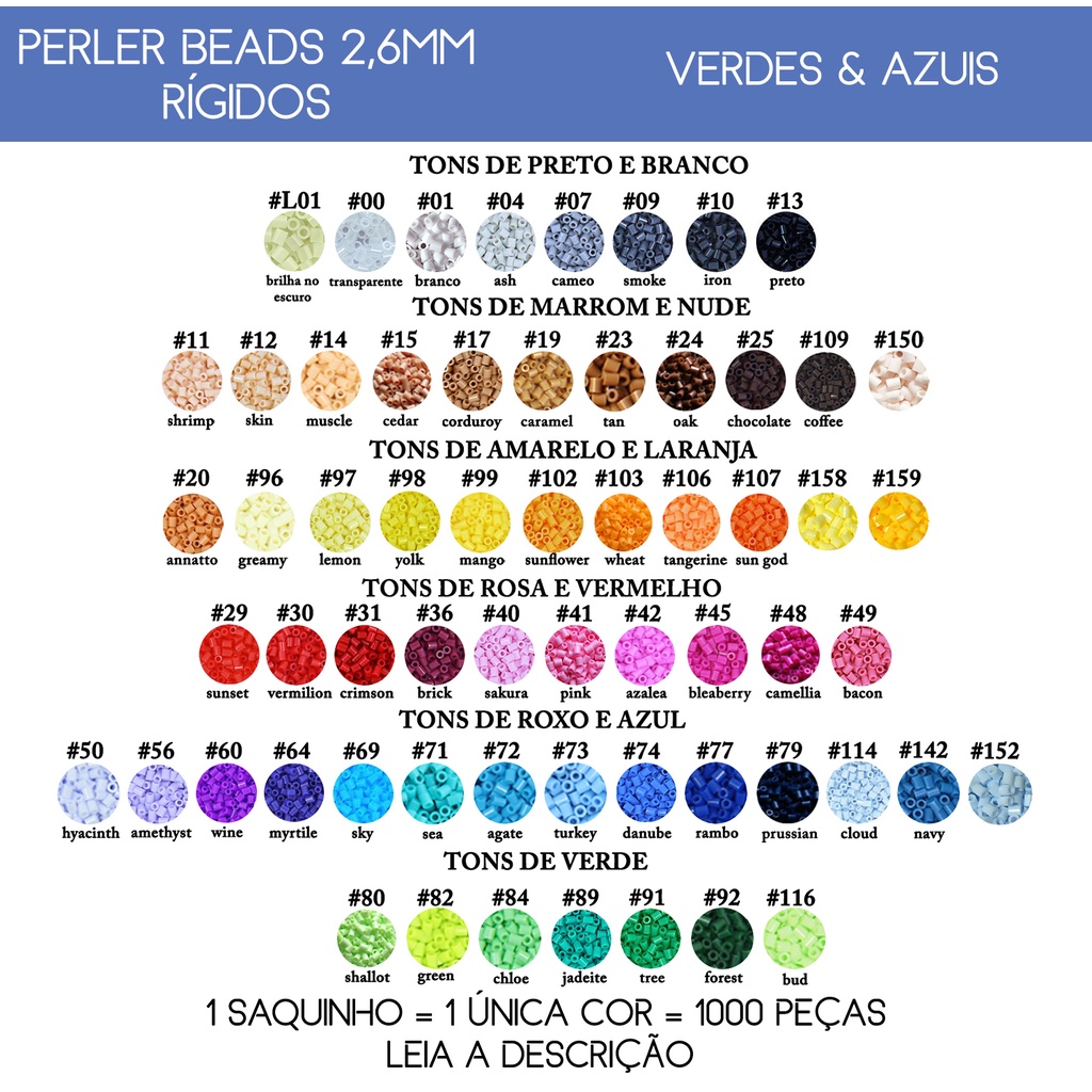 Perler Hama Beads 2,6mm Rígidos - de 5 a 20 mil peças - Escolha suas cores