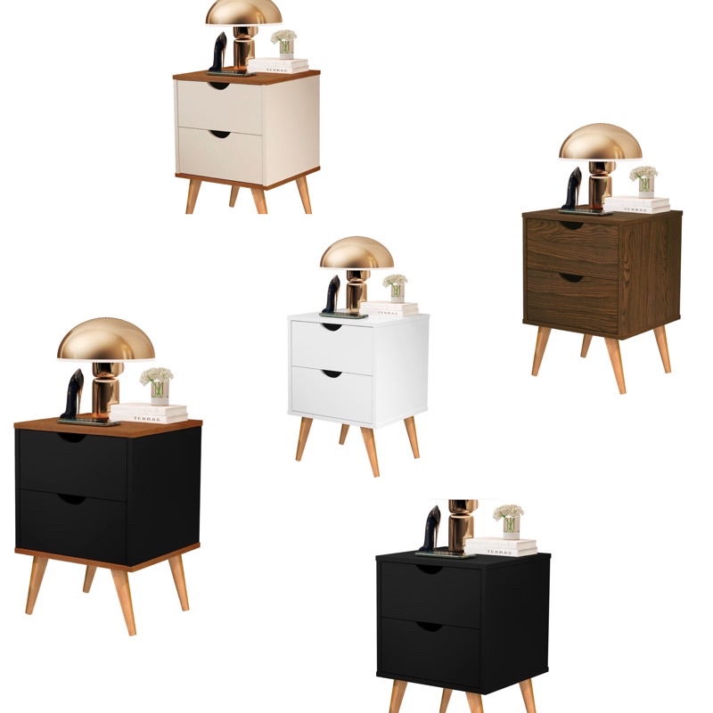 Kit 2 Mesas De Cabeceira Madri 2 Gavetas Estilo Retrô Várias Cores