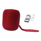 Kit Caixa Caixinha Som Portátil Bluetooth Potente Mp3 Usb SD 5W Recarregável Vermelha Com Mini Pen Drive 32GB Chaveiro