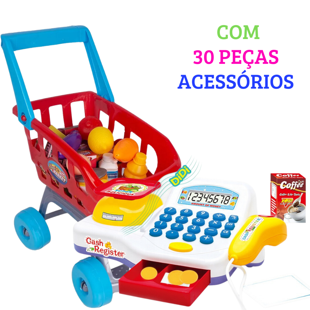 Caixa Registradora Maquina Brinquedo Infantil Com Carrinho De Compras Mercado E Acessórios