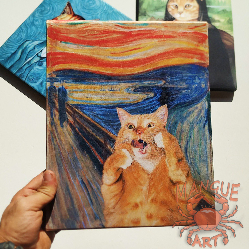 Quadro tela. O Grito felino. Obras de arte com gatinhos.