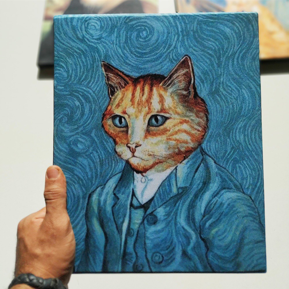 Quadro tela, Van Gogh Auto retrato com terno azul, (Obras de arte com gatinhos)