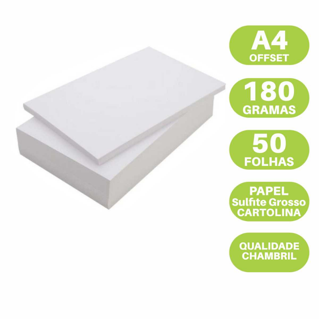 Papel Sulfite A4 Branco Grosso Cartolina 180gr Resma 50 Folhas OffSet ideal para impressão jato de tinta, artesanato, material escolar, Barato, Promoção