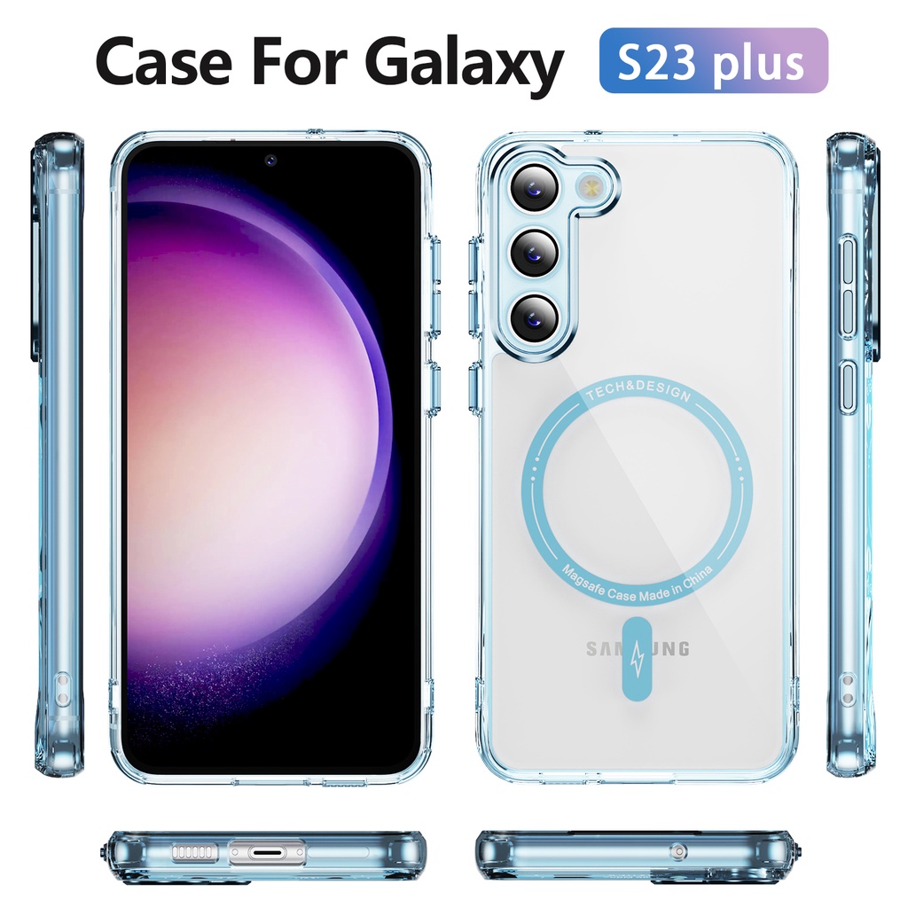Charmosa Capa De Telefone Azul Para Samsung Galaxy S23 Plus Ultra FE S23FE Crystal S23ultra S23 + Fina Magnética Sem Fio À Prova De Choque Carregamento Magnético Transparente E