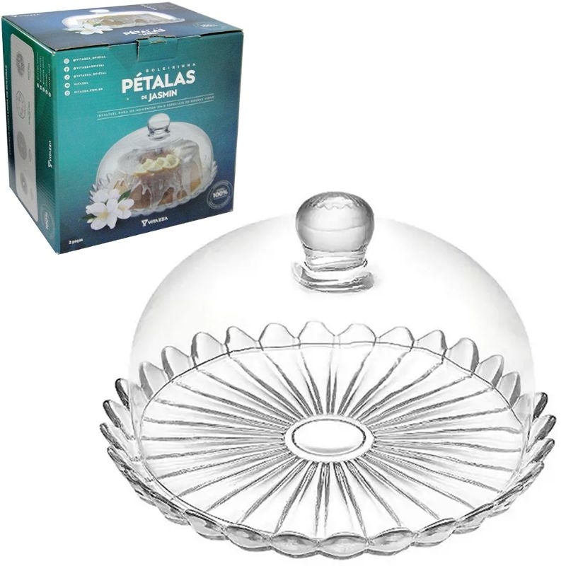 Boleira de Vidro com Tampa Pétalas de Jasmin 24cm Vitazza Prato para Bolo, Doce, Sobremesa, Decoração, Organização e Mesa Posta Elegante e Sustentável