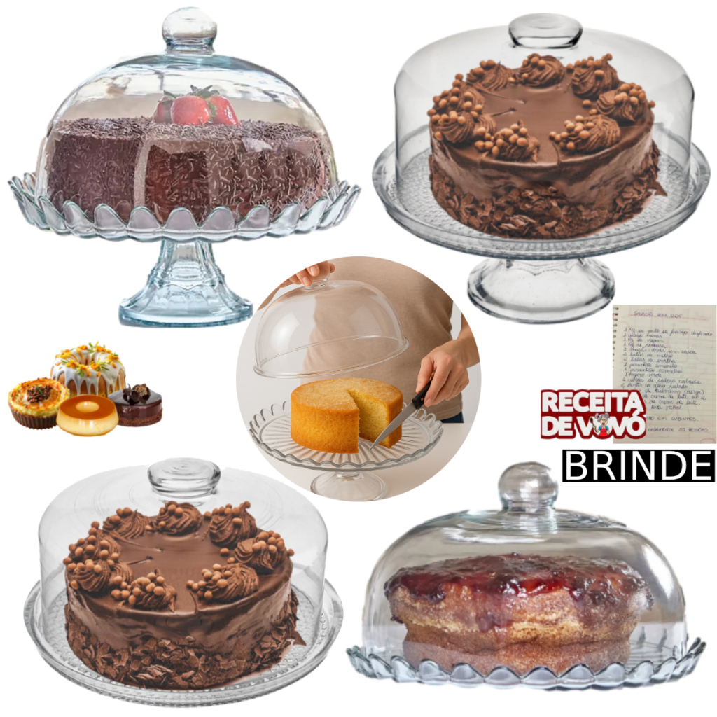 Boleira com Tampa de Vidro com Pé Prato para Bolo Vitazza