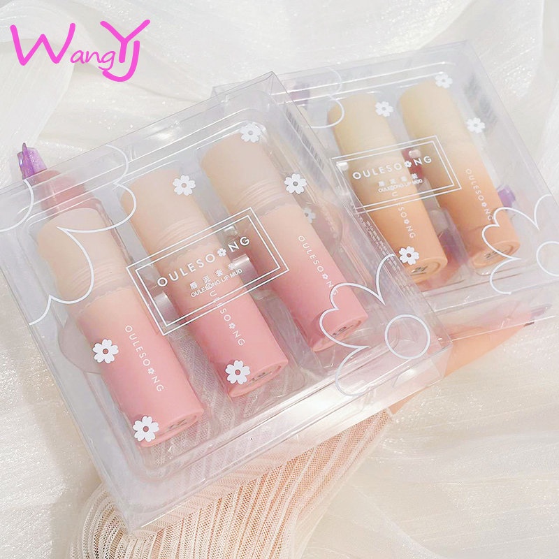 OULESONG Pequeno Leite Lama Lábios Névoa Facial Batom Brilho Labial