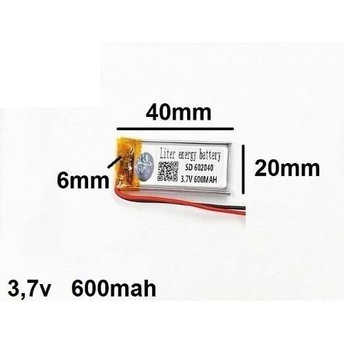 Bateria 3,7v 600mah 6mm X 20mm X 40mm 602040