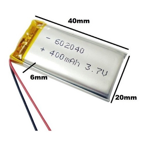 Bateria 3,7v 400mah 6mm X 20mm X 40mm 602040 Ml