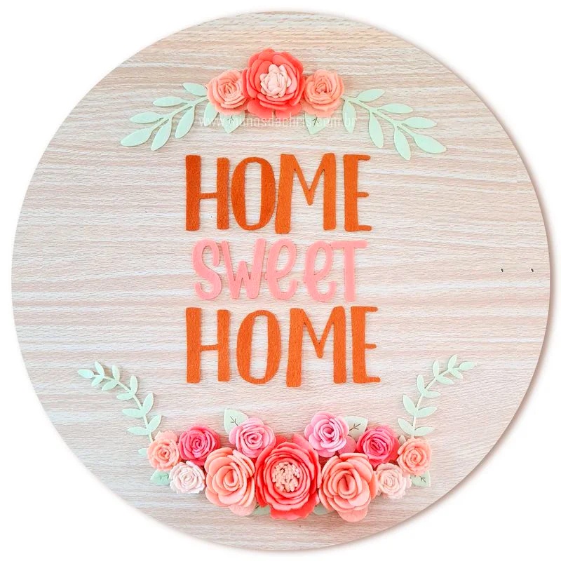 Kit Recortes Feltro Enfeite De Porta - Home Sweet Home Feltro Diy Faça você mesmo flores feltro