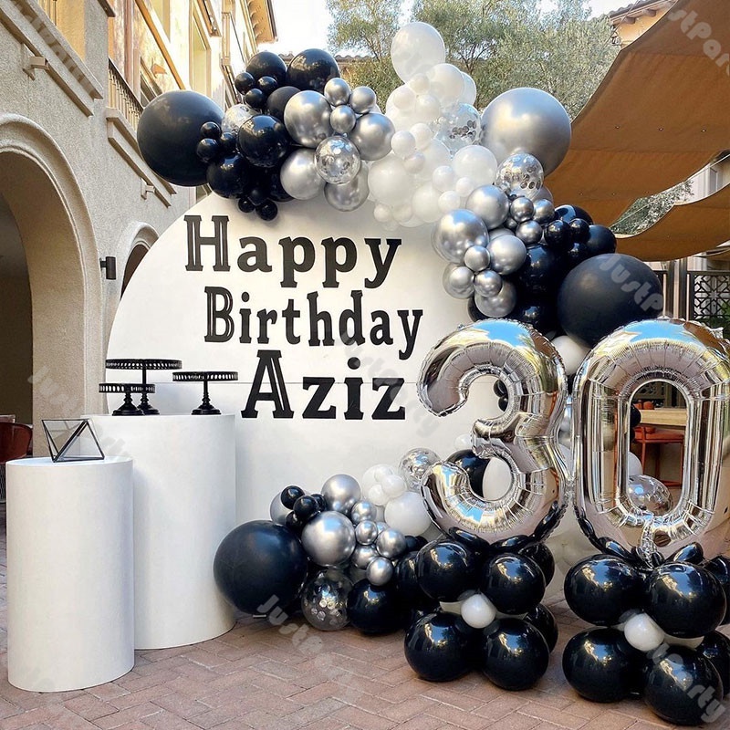 Kit 50 Balões Preto N°7 + 25 Prata Cromado N°5 Para Festas e Aniversários